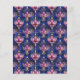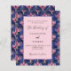 Arrière - plan bleu marine décoré avec un style rétro à motifs floraux roses. Personnalisez et ajoutez vos noms et les détails. 1 feuille = 1 invite imprimé bord à bord.