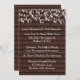 Apportez l'amour rustique de la campagne à votre mariage avec ces invitations personnalisées. Le design mariage rustique Romance est orné d'un arrière - plan en bois rond rustique foncé, agrémenté de minuscules fleurs blanches en cascade sur le dessus. Utilisez le modèle de libellé personnalisé pour personnaliser ces invitations pour votre journée spéciale.