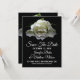 Magnifique faire-part de mariage avec une photographie d'une rose blanche couverte de rosée, sur fond noir. Personnalisez le texte selon vos besoins. Excellent moyen de prévenir tout le monde bien à l'avance de votre mariage à destination.