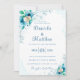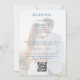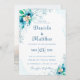 Belle invitation de mariage élégante dans un design de bordure florale bleue. Ce design moderne conviendra parfaitement à ceux qui aiment la simplicité avec une touche de chic. Parfait pour les mariages et toutes les occasions spéciales comme les fêtes, anniversaires, quinceaneras, 16 doux ou autres célébrations. L'avant de l'invitation présente des roses et des plantes aux tons bleus. À l'arrière, il y a un code QR qui vous mènera à un site Web généré par le code QR si vous décidez de l'utiliser. Le côté arrière présente également un design photographique défraîchi que vous pouvez facilement enlever pour mettre dans votre propre photo personnelle.