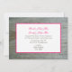 Une faire-part de mariage amusante et vibrante avec une photo d'une marguerite rose chaud qui regarde de gauche au-dessus d'un arrière - plan de bois d'écorce. Le côté opposé est constitué d'un arrière - plan en bois d'écorce avec du texte au centre dans un rectangle blanc surligné de rose chaud correspondant à la marguerite. Personnalisez avec les détails de votre événement. L'écriture est de mariée et mariée.