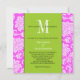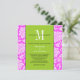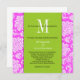 Faire-part de mariage rose Damas vert Monogramme