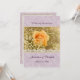 Faire-part de mariage d'une pêche élégante et de lavande avec une photographie romantique d'un rose féminin de pêche entouré par le souffle du bébé sensible encadré par la dentelle et les perles enes ivoire. L'arrière - plan est lavande en pastel avec un motif imprimé de dentelle.