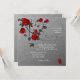 Arrière - plan gris avec des roses rouges sur une vigne.