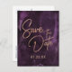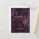 Faire-part de mariage en carte postale avec lettrage à la feuille d'or Rose Gold et aquarelle Violet foncé. Parfait pour un mariage d'automne ou d'hiver avec une police de caractères à la main tendance ! ~ Découvrez ma boutique pour voir toute la collection de mariage avec ce design !