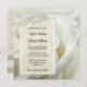 Un faire-part de mariage artistique moderne avec des tourbillons floraux argentés sur un rose en ivoire peint arrière - plan avec de minuscules perles. Cette invitation fait partie d'une collection de mariages.