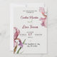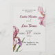 Faire-part de mariage simple avec un design élégant avec un arrière - plan blanc texturé décoré avec des illustrations aquarelles d'iris rose et violet dans les coins supérieur droit et inférieur gauche, ajoutant une touche d'élégance à votre journée spéciale.