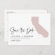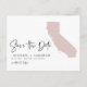 Annoncez la date de votre mariage à votre famille et à vos amis avec ce faire-part de mariage sur le thème de la Californie. Il présente une illustration de l'État de Californie, une typographie simple et une écriture manuscrite. Personnalisez-le en ajoutant vos noms, date, lieu et autres détails. Cette carte de faire-part de mariage en Californie est parfaite pour tout thème de mariage.