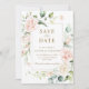 Le design présente de magnifiques fleurs aquarelles rose et blush dans un cadre doré imprimé.