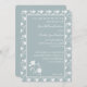 Donnez le ton pour votre célébration romantique avec ce Faire-part de mariage de bouquet de Rose Vintage bleu Dusty, parfait pour une histoire intemporelle et féminine. Présentant un agencement délicat de fleurs blanches et de motifs roses d'inspiration vintage, cette invitation dégage élégance et charme classique. Élégant script pair avec une typographie gracieuse pour mettre en évidence les noms de la mariée et du marié et tous vos détails mariages. Idéal pour des cérémonies de mariages à thème rose ou vintage, ce design ajoute une douceur florale à votre journée spéciale.