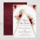 Annoncez votre mariage avec style avec cette carte de faire-part boho, mettant en vedette des roses de Bourgogne profondes, de l'herbe de pampa et des tons neutres doux. Le fond blanc minimaliste fait ressortir magnifiquement l'œuvre d'art florale. Parfait pour les mariages d'automne, les thèmes rustiques et les couples boho modernes.