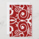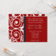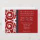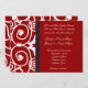Invitation rouge et blanche festive avec juste une touche de damas bleu.