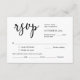 Il s'agit de la belle carte de boîtier RSVP romantique moderne (Répond), en caractères noirs, où vous pouvez modifier, modifier la couleur et le format selon vos besoins de conception, avec options de repas, sièges réservés, nombre de participants et option de demande de chanson. #TeeshaDerrick