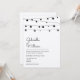 Une élégante faire-part de mariage rustique avec de jolies lampes à cordes au-dessus des noms du couple heureux, dans un script élégant au-dessus des détails spéciaux du mariage. Conçu par Thisisnotme©