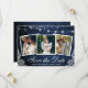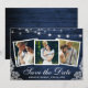 Carte d'Annonce de Fiançailles Faire-Part de Mariage Rustique Bleu Bois Lumières Guirlande et Dentelle 3 Photos