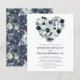 Faire-part de mariage personnalisés bleu marine et bleu poussiéreux à petit budget avec un fond blanc tendance qui peut être changé en n'importe quelle couleur, un cœur de fleur aquarelle bleu rustique et un modèle de mariage moderne.