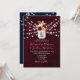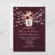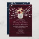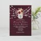 Elégant, moderne, bois rustique faire-part de mariage bordeaux avec monogramme, belles fleurs aquarelles en pot de maçon, lumières à cordes et script de calligraphie tendance. Un choix parfait pour les mariages de automne romantiques !