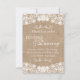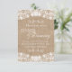 Magnifiques créations numériques et faisant partie d'un ensemble, ces faire-part de mariage western country rustiques. Conception unique avec dentelle blanche sur fond de toile de jute. Ajoutez simplement vos propres informations de mariage dans la zone de modèle ci-dessus à droite, ou si vous avez besoin de modifications supplémentaires, cliquez sur le bouton « Personnaliser » ci-dessus. Parfait pour tout thème de mariage western country ! Veuillez noter que ces invitations sont des cartes plates imprimées - la dentelle et la toile de jute sont simplement une image de haute qualité de notre propre conception. Des invitations assorties, des cartes de conservation de date, des RSVP, des timbres-poste et des cartes de remerciement sont disponibles.