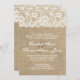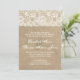 Ce faire-part de mariage rustique présente un arrière - plan sombre aux allures de burlap avec un accent dentelé qui court sur le sommet. Parfait pour un élégant mariage à thème rustique ou vintage.