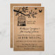 Conception de faire-part de mariage rustique et vintage. Cage à oiseaux suspendue à un arbre. Deux oiseaux d'amour volent vers la liberté. Avec fond en papier marron. Vous pouvez personnaliser le texte pour n'importe quelle occasion en automne. Enterrement de vie de jeune fille, shower de bébé, fête de fiançailles, enterrement de vie de jeune fille, barbecue, anniversaire, anniversaires de mariage et bien plus encore. Obtenez une carte de réponse RSVP assortie, un timbre-poste et des autocollants dans ma boutique Zazzle.
