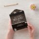 Faire-part de mariage rustique en pot Mason et tonneau en bois tout-en-un. Carte-réponse RSVP. Pas besoin d'enveloppes !