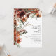 Ces faire-part de mariage élégants et naturels présentent des fleurs rustiques en aquarelle terracotta et rouge foncé, des feuilles sèches et des brindilles. C'est l'invitation parfaite pour un mariage rustique et bohème d'automne. Nouvelle collection automnale. Design moderne et tendance.