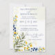 Ce faire-part de mariage est décoré dans un style élégant et fleuri, avec des fleurs jaunes et bleues de style aquarelle et des feuilles verts sur les côtés. L'arrière - plan a un lave-linge doux et clair, ajoutant à l'esthétique délicate et artistique. L'aménagement est bien organisé, avec des détails clés clairement mis en évidence.