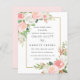 Des roses roses et des fleurs d'hortensia blanc brillant sont nichées dans des feuilles vertes douces pour créer des arrangements floraux élégants qui décorent un cadre doré scintillant qui entoure vos détails de mariage. Le dos est rose blush avec un bouquet floral coordonné simple. Cet article fait partie de la collection de mariage florale rose et blanche Blush Pink.