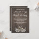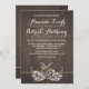 Faire-part de mariage rustique Horseshoe Baby's Breath - avec un fond en bois rustique avec du baby's breath, des fers à cheval et un nœud lâche en corde en forme de cœur. Voir la collection complète correspondante dans ce design sur cette page.