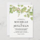 Faire-part de mariage à motif botanique avec un fond blanc minimaliste qui peut être personnalisé à n'importe quelle couleur, lierre vert aquarelle rustique avec des baies rouges et un modèle de texte de mariage élégant.