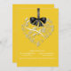 Cette magnifique invitation de mariage élégante présente une forme de coeur remplie de délicates fleurs blanches et d'un ruban et d'un arc en satin noir. Moderne et romantique, ce sera certainement le décor de votre journée spéciale. Facilement customisé. Beaucoup de couleurs à choisir. (soleil)