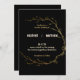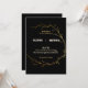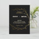 Voici un choix magnifique pour les invitations à votre mariage de couleur or et noir. Ce dessin est composé d'une fausse feuille d'or chic encerclant les noms de la mariée et du marié, suivis de leurs détails mariages facilement personnalisés. Le tout sur un élégant arrière - plan noir. Le dos de la carte présente un faux feuillage doré sur arrière - plan noir. Le verso de la carte est disponible pour les premières lettres des noms que les mauvaises herbes auraient.