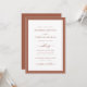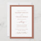 Faire-part de mariage simple en terre cuite. Rendez votre invitation de mariage aussi mémorable que votre journée spéciale avec ce design chic et élégant. Doté d'un look minimaliste simple avec une touche traditionnelle classique, ce faire-part moderne uniquement textuel présente un script de calligraphie à la main avec un cadre de bordure en terre cuite / orange brûlée classique. Trouvez des produits coordonnés dans la gamme de mariage Simple Elegant Terracotta Border.