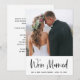 Ces faire-part d'après mariage et invitations de fête simples et élégants présentent votre photo personnelle sur le devant, avec une écriture manuscrite noire tendance qui dit "nous sommes mariés". Il y a de la place pour ajouter vos noms et la date. Un look frais et moderne qui est le moyen idéal pour informer vos amis et votre famille que vous êtes mariés, et les inviter à votre fête de célébration d'après mariage.