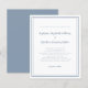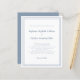 Faire-part de mariage élégant et tendance à petit budget présentant un design contemporain minimaliste simple avec une double bordure encadrée de couleur bleu poussiéreux sur fond blanc croquant. La formulation traditionnelle offre une sophistication intemporelle mais moderne. Personnalisez le design de mariage avec vos détails en lettrage et écriture élégants de couleur bleu poussiéreux. Le dos de la carte est assorti d'un bleu poussiéreux uni.