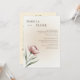 Un arrière - plan minimaliste épuré avec une fleur rose unique couleur aquarelle sur fond crème douce, parfait pour des papeteries de mariage modernes et élégantes.