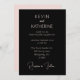 Voici une carte d'invitation de mariage classique noire et rose poussiéreux. Ce design présente une police de caractères rose poussiéreux sur fond noir. Parfait pour les couples qui prévoient un mariage minimaliste simple !