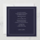 Le faire-part de mariage bleu-foncé simple avec de doubles carrés et écriture grise, cet invitation peut être employé pour n'importe quelle occasion spéciale. Cet invitation est disponible dans le *Note d'ivoire, blanc et bleu-foncé - filigrane de picoseconde du verso, facilement démontable.