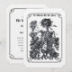Cette invitation de mariage fantaisiste présente une illustration vintage de la mort squelettique parée de roses. Parfait pour les mariages d'Halloween ou de Dia de los Muertos, ou pour quiconque sait que la mort est présente même au milieu de la vie. Design vertical noir et blanc.