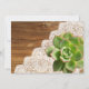 Invitations chics rustiques avec du charme de mariage comportant des images de vieux bois, de la dentelle blanche, et d'un succulent vert gai. Grand pour des mariages de cowboy, de pays, de ferme, de jardin ou de grange. NOTEZ QUE TOUS LES ÉLÉMENTS SONT DES EFFETS IMPRIMÉS--IL Ne Y A AUCUN DENTELLE, BOIS, ETC. RÉELS.
