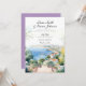 Cette invitation de mariage présente le thème du paysage de la Côte d'Azur dans un style aquarelle vintage