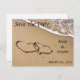 Cartes de plage pour annoncer la date avec des coeurs dessinés dans le sable ! Modèle facile à utiliser - il suffit d'ajouter les noms de la mariée et du marié, ainsi que la date du mariage dans l'espace prévu.