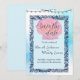 Cette invitation ressemble à un doux murmure de l'océan, vous invitant doucement à une célébration d'amour. Sur un fond serein de bleus apaisants et de tourbillons de turquoise délicats, rappelant les vagues qui caressent le rivage, est suspendue une délicate guirlande de lumières - chacune symbolisant la lueur chaleureuseuse de l'amour qui unit deux âmes.