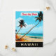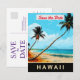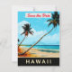 Adoptez l'esprit d'Aloha avec cette illustration paradisiaque aérée et bordée de palmiers. Cette œuvre d'art touristique classique de haute qualité procure une ambiance de nostalgie intemporelle pour votre mariage hawaïen ou votre faire-part de mariage sur le thème de l'île.
