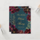 Une invitation de mariage à ton de joaillerie bleu sarcelle Save-The-Date présentant une symphonie de pivoines bordeaux framboise rouge foncé ornées de pulvérisation dorée et de contours dorés scintillants rassemblés autour d'un fond de lavis aquarelle bleu sarcelle foncé avec vos noms en écriture rustique dorée et une petite police sans empattement majuscule annonçant vos coordonnées.