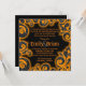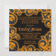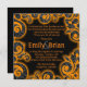 Parties scintillant orange noir damask tourbillon invitations mariage