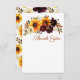 De magnifiques cartes de remerciement tournesol de couleur bourgogne et or. C'est la façon parfaite de remercier vos invités et de les associer à notre suite de faire-part de mariage Tournesol !