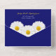 Faire-part de mariage tout-en-un avec carte-réponse détachable sur fond bleu marine avec grande marguerite blanche. Design simple de carte-réponse détachable pour faire-part de mariage qui présente une belle marguerite blanche avec fleur jaune au centre sur fond bleu marine. Jaune, bleu marine et blanc, cette invitation simple est idéale pour un mariage rustique, champêtre ou d'été.