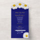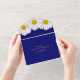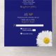 Faire-part de mariage tout-en-un avec déchirure sur fond bleu marine avec daisy de Shasta blanc et carte-réponse. Design simple de carte-réponse déchirure pour faire-part de mariage qui présente une belle marguerite blanche avec fleur centrale jaune sur fond bleu marine. Jaune, bleu marine et blanc, cette invitation simple est idéale pour un mariage rustique, champêtre ou estival.