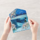 Une scène de fantaisie hivernale bleue avec un cadre géométrique doré et de la neige fraîchement tombée dans un paysage hivernal féerique est facile à personnaliser avec votre texte pour le couple de mariés.